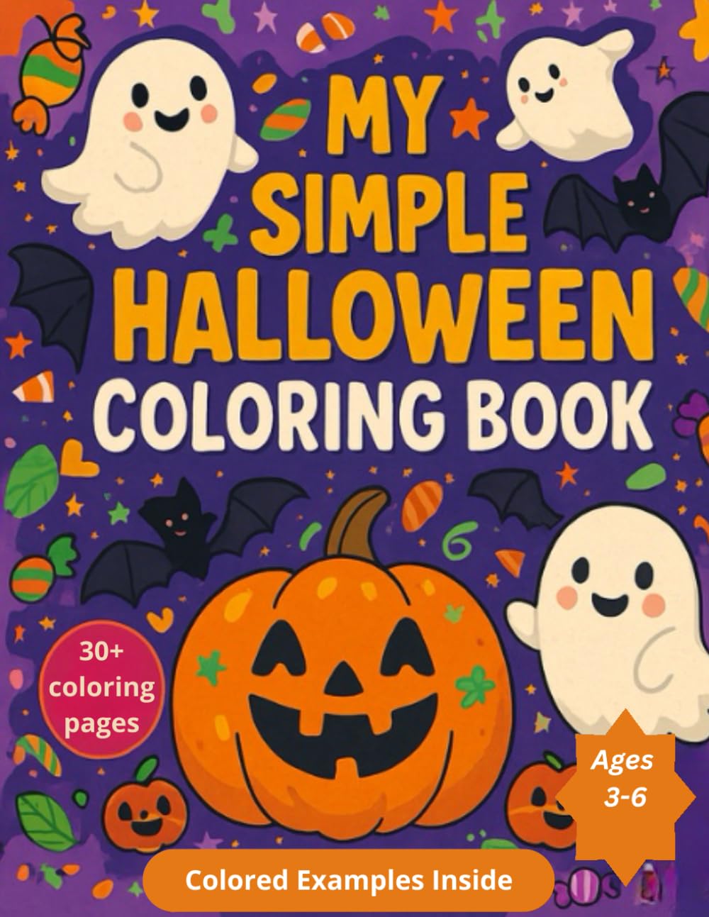 A fun and calming Halloween coloring book for kids ages 3–6!